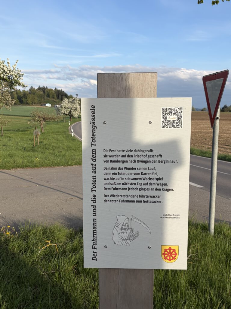 Nachdem 2025 der Sagenweg in Billafingen eingeweiht wurde ( siehe Beiträge auf meiner Webseite und auf der Website der Gemeinde Owingen), stehen nun zwei Stelen mit Sagengedichten auch in Owingen.