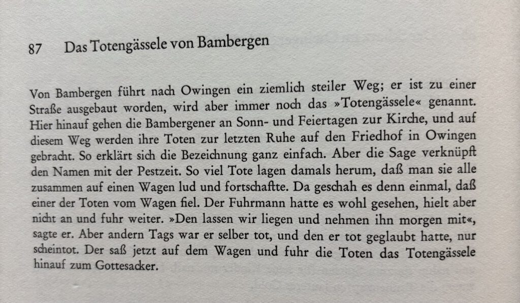 Für mich bleibt der Kern der Sage unheimlich und unerklärlich, aber er weist auf die Schmerzen, das Leid und die Nöte hin, die auf Totenwegen in Sammelgräbern endeten.